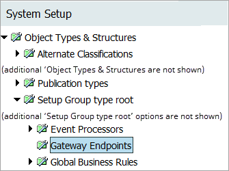 A setup group is created as a node in the System Setup hierarchy. Gateway integration endpoints can now be created under this new node.