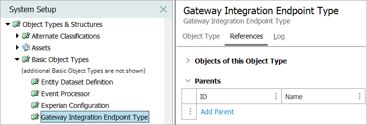 - In Object Types & Structures > expand Basic Object Types > select Gateway Integration Endpoint Type.
