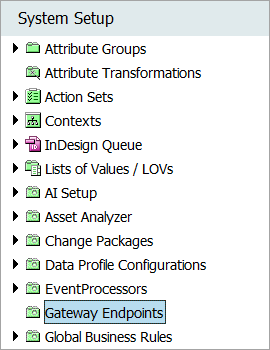 Review your System Setup tab to determine if one or more gateway integration endpoint nodes already exist. The name of the node on your system should include the word 'gateway' but is not required to match the one in the image below.