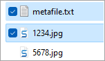 When selecting one metafile in addition to one or more asset files to zip, the metafile must express the asset(s) with their respective filenames. Zipping the multi-selected files in the image below, metafile.txt must express the asset file as 1234.jpg.