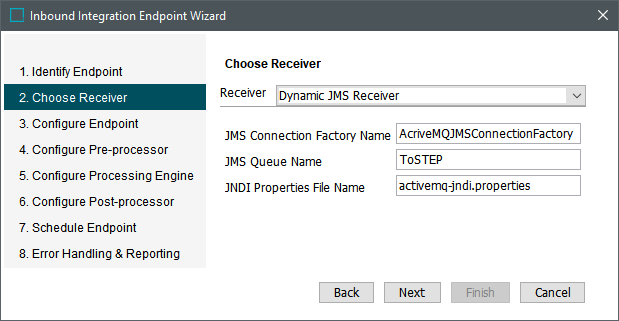 Once the server-side configuration is in place, the Dynamic JMS Receiver can be configured via the workbench.