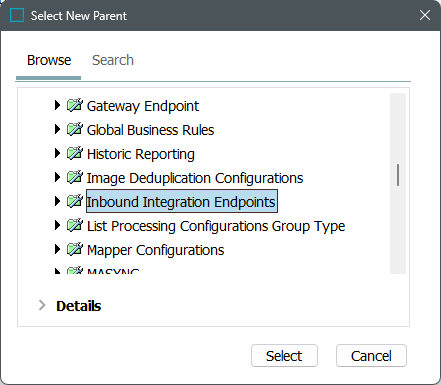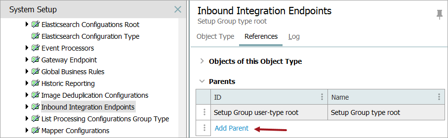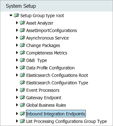A setup group is created as a node in the System Setup hierarchy. Inbound integration endpoints can now be created under this new node.