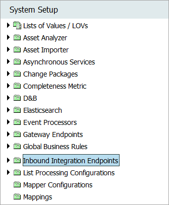 Review your System Setup tab to determine if one or more inbound integration endpoint nodes already exist. The name of the node on your system is not required to match the one in the image below.