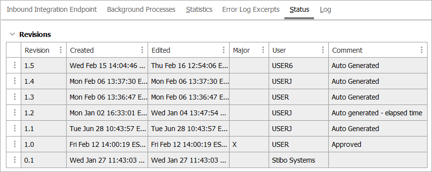 The Integration Endpoint Log section contains information about the endpoint background process. An entry is generated each time the endpoint is invoked, when background processes generated by the endpoint are started, and when processing errors occur.