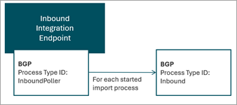 An active inbound integration endpoint uses an associated background process to handle the scheduled invocation of the endpoint. The execution report for this background process is integrated in the workbench endpoint editor and includes invocation information as well as messages logged from the receiver. When using the standard STEP Importer processing engine, the actual import is handled in separate background processes started by the endpoint, as illustrated below.