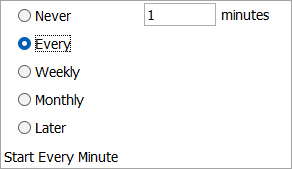 Every - automatically run the endpoint repeatedly, every selected number of minutes. One (1) minute is the shortest interval allowed and is closest to real time. Enter the number of minutes in the text box. The selection is summarized at the bottom of the dialog.