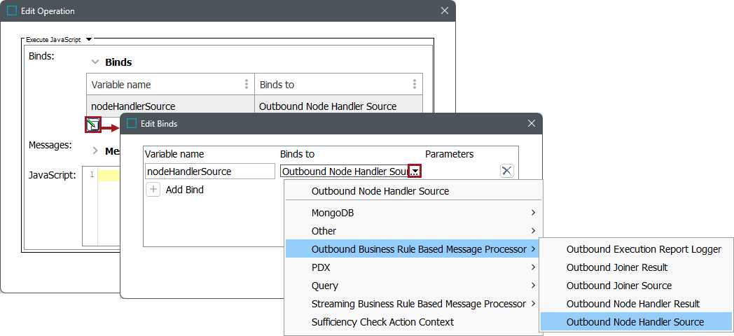 The OutboundBusinessProcessorNodeHandlerSource interface (for JavaScript business actions, the interface is available via the Outbound Node Handler Source bind option) provides the business action with access to the batch element. The interface has the following methods for accessing node / event information: