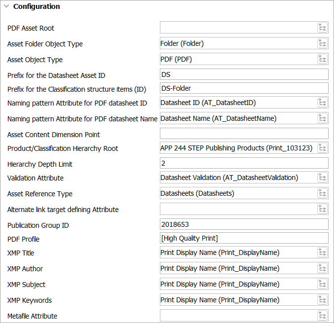 PDF Profile: The Adobe PDF profile ID used for the datasheet creation. The default is [High Quality Print].