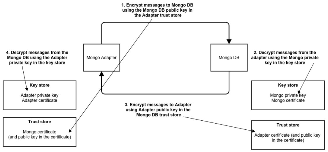 When the Mongo DB adapter is configured for SSL, a key store and a trust store must be configured.