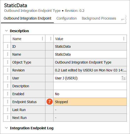 - Enable the endpoint and invoke it as described in Running an Outbound Integration Endpoint.
