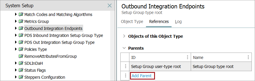 A setup group is created as a node in the System Setup hierarchy. Outbound integration endpoints can now be created under this new node.