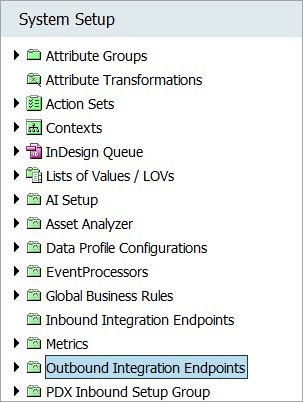 Review your System Setup tab to determine if one or more outbound integration endpoint nodes already exist. The name of the node on your system is not required to match the one in the image below.