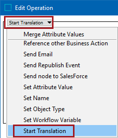 - In the Edit Operation dialog, select the Start Translation business operation, as shown in the image below.