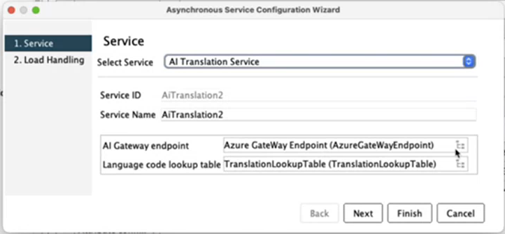 • AI Gateway endpoint - Select the gateway endpoint. For more information on setting up the gateway endpoint to enable a connection with an LLM, refer to the Configuring and Using Asynchronous Translation using AI topic.