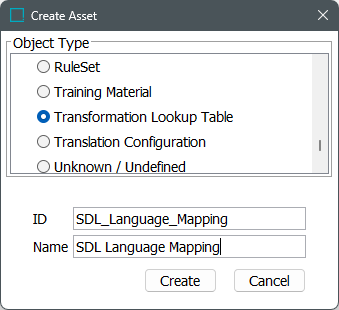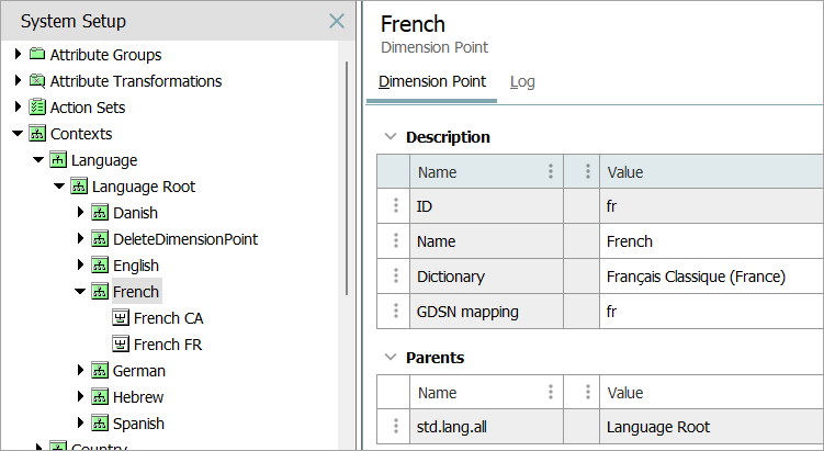 Note: When the language and country codes are not in the correct format in the IDs of the language dimension points, a Transformation Lookup Table is required.