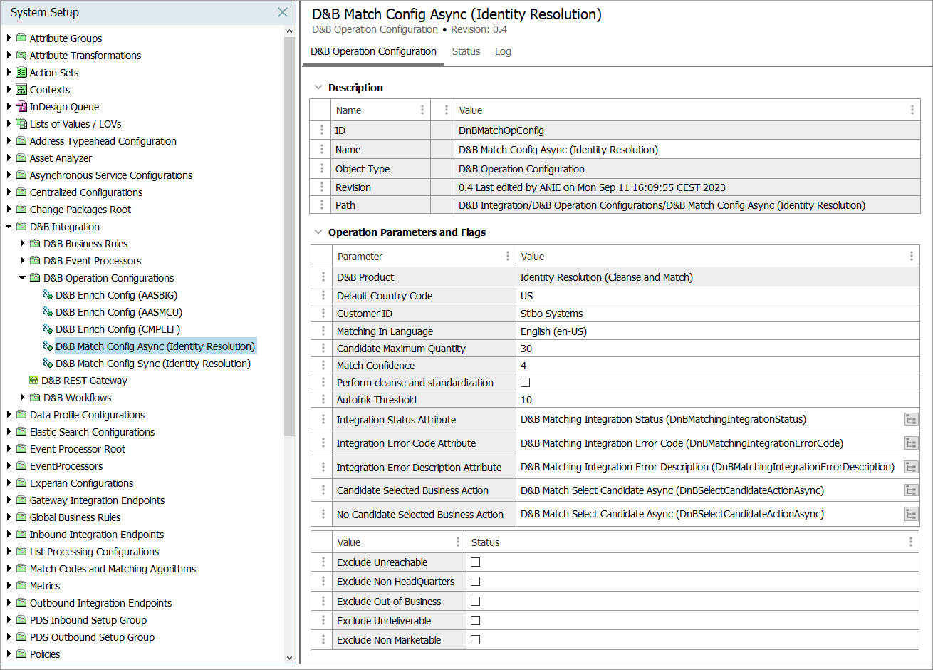 Note: Matching candidates are based on the D&B Match Request Sync Wrapper created by the Easy Setup in the D&B Integration folder.