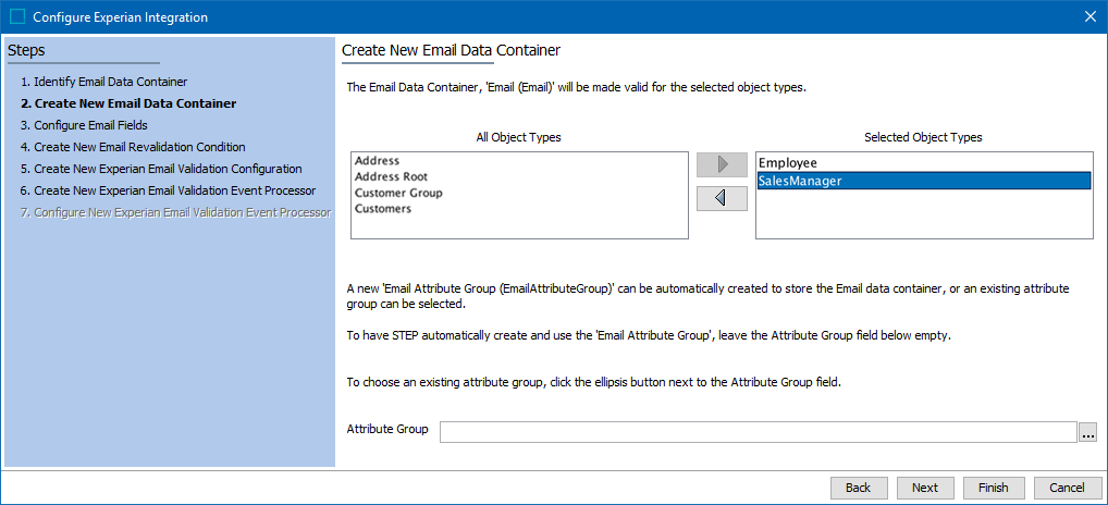 The Experian Email Validation Integration includes an Easy Setup wizard that creates the setup files, needed attributes, and data containers. The Easy Setup wizard is designed to make it so that users have very little configuration to do to get up and running as soon as possible.