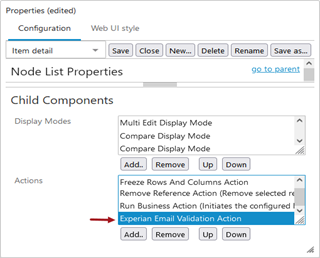 Once the Experian Email Validation Action component is added to the Node List Actions parameter, follow the steps below to complete the configuration.