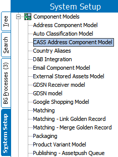 The CASS Address Component Model is found under Component Models on the System Setup tab. If the CASS Address Component Model is not present, contact Stibo Systems.