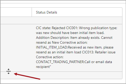A Catalog Item Confirmation (CIC) message is a GDSN-specific message type that refers to communication between a data recipient and a data source, indicating the status of an item in regards to its standing with the recipient. CIC statuses are displayed within the External Status field and additional details are displayed within the Status Details field.