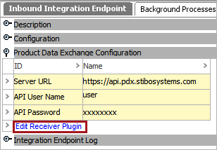 Open the 'Product Data Exchange Configuration' flipper and click the Edit Receiver Plugin link.