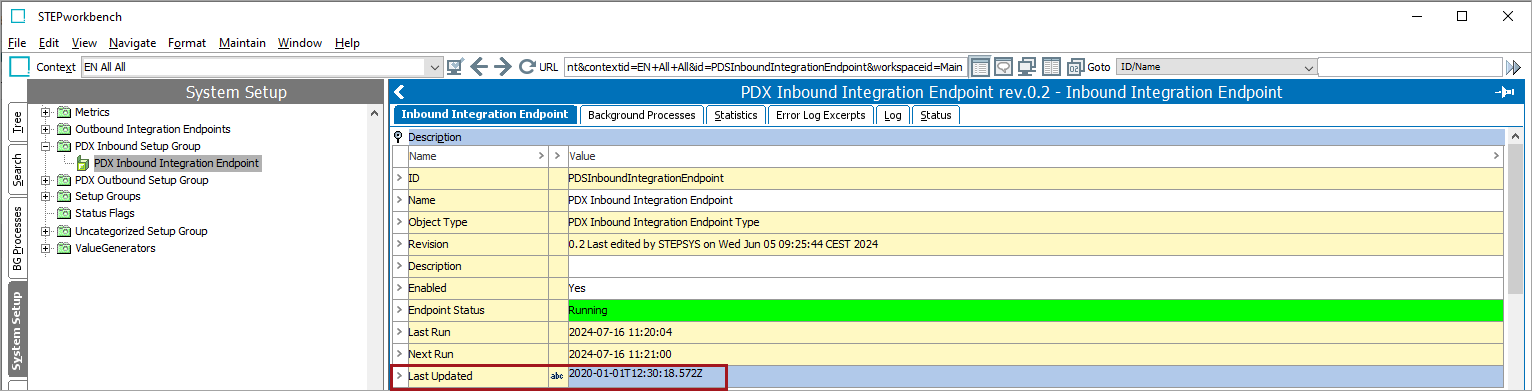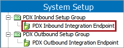 On the System Setup tab, in the PDX Inbound Setup Group node, open the PDX Inbound Integration Endpoint.