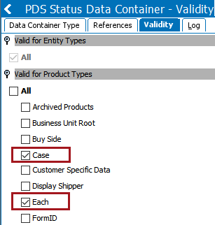 On the Validity tab, make the data container valid for the product object types that will be integrated with PDX.