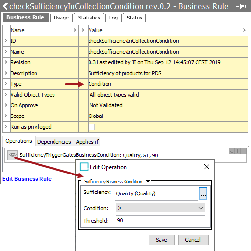 - Create a new business condition, using the ID from the Sufficiency.CheckSufficiencyInCollectionConditionID configuration property (defined in the Prerequisites above).