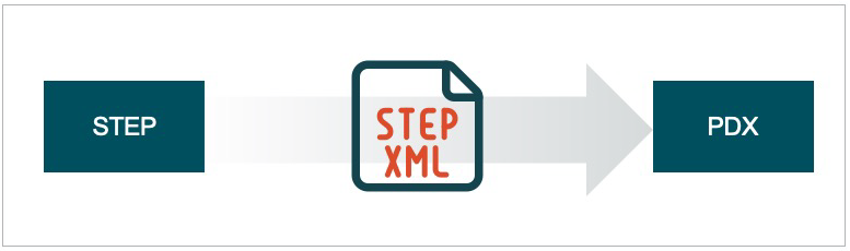 The STEPXML-based OIEP produces cross-contextual STEPXML files that get enriched to make it self-contained. The final payload is then sent to PDX through the external API available, where it gets parsed into PDX-native JSON and imported.
