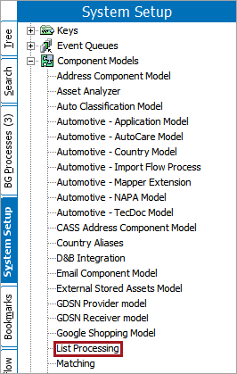 From the System Setup tab, select the 'Component Models' node, then select the 'List Processing' option.