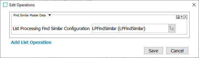 The Find Similar Master Data operation requires a List Processing Find Similar Configuration.
