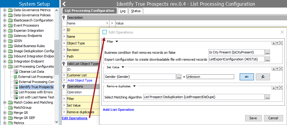2. On the Edit Operations dialog click the 'Add List Operation' link.