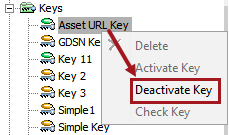 1. Deactivate the Asset URL Key by selecting the key in System Setup, then right-click and select Deactivate Key.