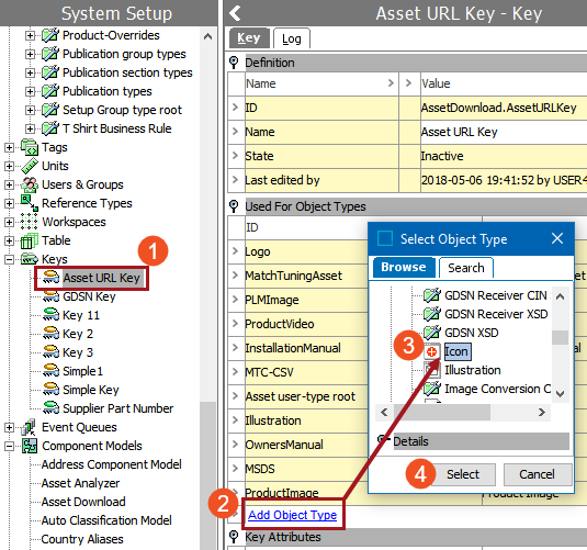 1. Return to the Asset URL Key and click the 'Add Object Type' hyperlink under the 'Used for Object Types' flipper on the Key tab.