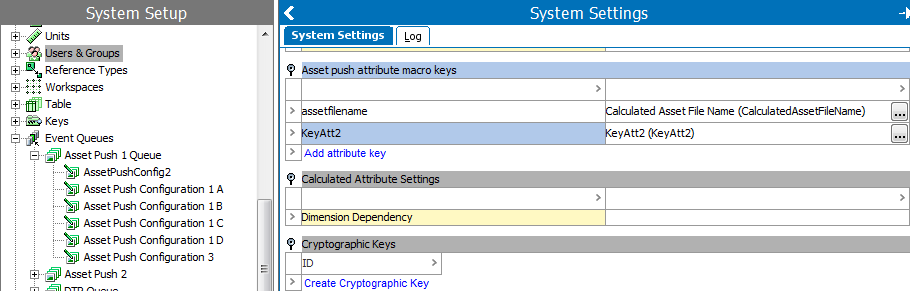 1. In System Setup, click on the Users & Groups node and navigate to the 'Asset push attribute macro keys' section under the System Settings tab.