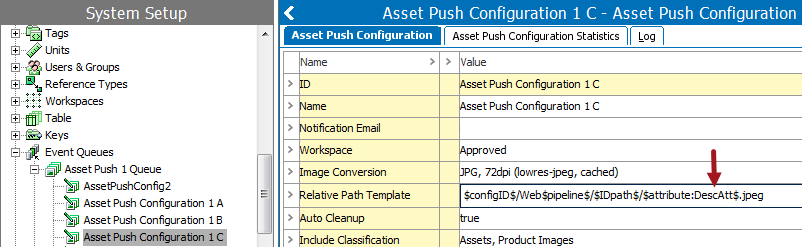 1. Return to the desired asset push configuration and enter the desired Attribute Key.