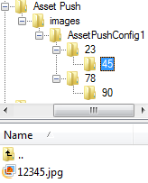 Rather than using the file structure in STEP, an asset push configuration specifies how to organize the generated external file structure via a Relative Path Template (RPT). Typically the folder structure is based on the asset's ID, which cannot be changed and ensures the external structure is stable and free from accidental duplication. This means that it is not possible for the same image to occur in multiple folders in the external structure (unless multiple configurations are used).
