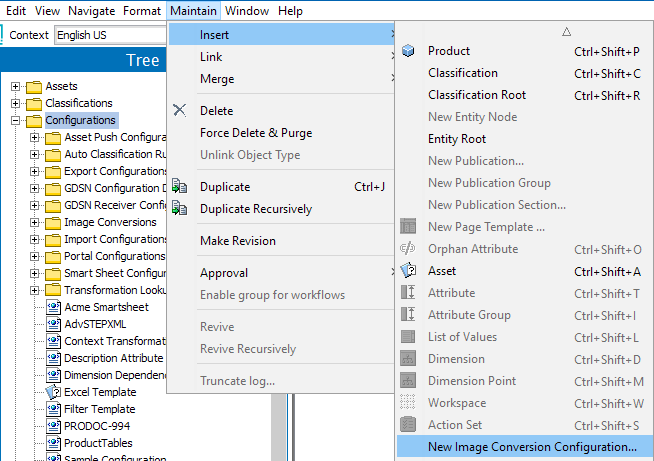 - Click the Maintain menu > Insert > New Image Conversion Configuration to display the Create Image Conversion Configuration wizard.