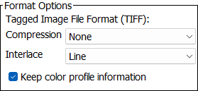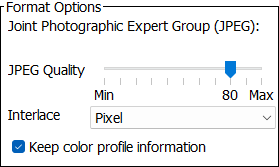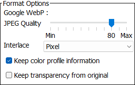 Note: The 'Keep color profile information' option available with some formats (JPEG, WEBP, PNG, and TIFF) can override other selections made in the conversion configuration. If results of the conversion are not as expected, try disabling the selection (which is checked by default).