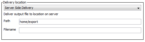 • Server Side Delivery exports the file into a folder located on the application server of the STEP system. The file is only delivered if the specified path has read / write access on the server. Enter the path of the application server and the name of the file.