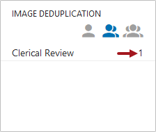 Clicking the 'Clerical Review' count displays the 'Image Deduplication - Clerical Review - Available' page with the image group that requires manual identification of duplicates.