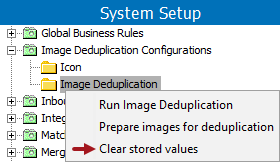 - In System Setup, select the image deduplication configuration, right-click, and click the Run Image Deduplication option. For details, refer to the Handling Duplicate Images topic.