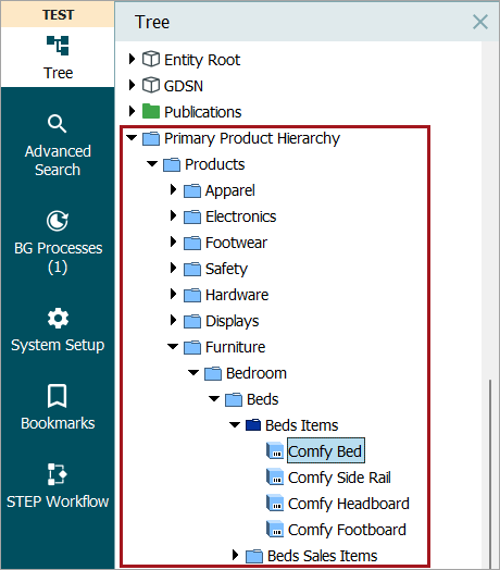 The Product super type is used to create hierarchies and objects that use inheritance of data for objects categorized by similar characteristics. In STEP, products are represented by default with blue icons either as folders or nodes, though these icons can be updated by an admin user. Upper nodes in a product hierarchy are often categories and subcategories, with leaf nodes being actual objects. Whether an organizational folder, sellable object, or something else, each node in the hierarchy is of the product super type, and all child objects are able to inherit attributes and values from parental objects.