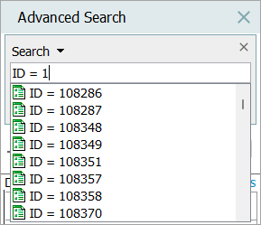 Enter the attribute ID (case sensitive), enter a search operator or enter a SPACE and select an operator from the typeahead menu, then enter the value to search for.