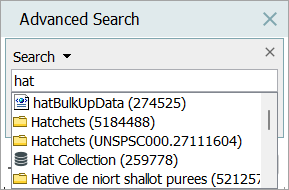 A text string entered in the search field will search for object names, IDs, or attribute values where the text occurs.