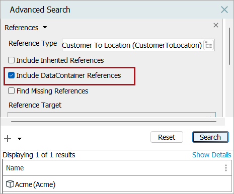 Include Data Container References: When this is selected, references that appear on data containers may appear in the search results.