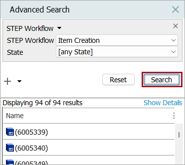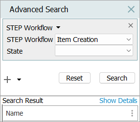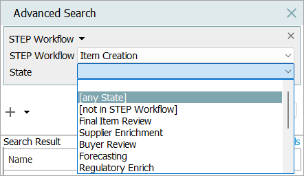 With the STEP Workflow search criteria you can search for and monitor STEP workflows. Selecting a specific workflow from the dropdown list will show all items associated with the workflow. You can also specify the workflow state to narrow your search.