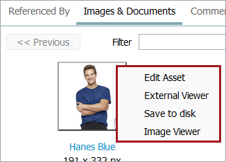 By right-clicking on the asset, users can edit any assets on the page, open an external viewer, save the image to a disk or local PC, and view the image on a larger scale.