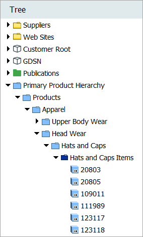 A portion of a sample hierarchy is shown below. Categories are represented by folder icons, while discrete objects are represented by cubes.