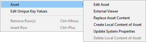 The 'Create Local Content of Asset' option initiates an asset push and downloads the asset.